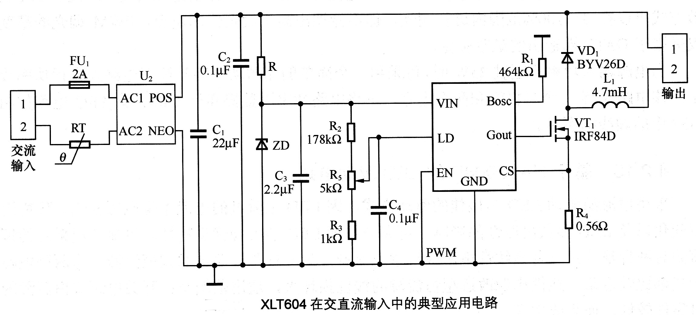 • XLT604在交直流輸入中的典型應用電路